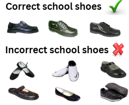 Black, fully enclosed leather shoes for all practical lessons